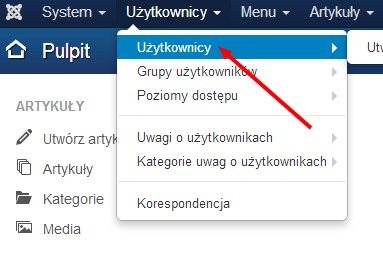 b. Przejdź do "Użytkownicy->Użytkownicy", gdzie znajduje się spis wszystkich administratorów serwisu.