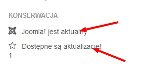 3. Dbaj o aktualność systemu CMS i dodatków na stronie. Zaraz po zalogowaniu do zapleczena zerknij na dół po lewej stronie znajduje się tester aktualności, który informuje, że znaleziono aktualizacje. Aktualizacje dodatków czy samego CMSa odbywa się kilkoma kliknięciami. Wystarczy kliknąć w wybraną opcję (gdy pojawia się przy niej komunikat, że znaleziono aktualizacje):