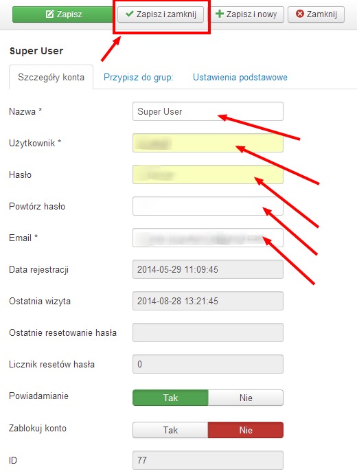 Na koniec kliknij "Zapisz i Zamknij" by zmiany zostały zachowane.