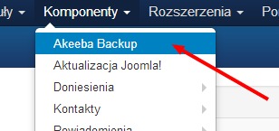 a. Na zapleczu strony, z górnego menu wybierz "Komponenty->Akeeba Backup"