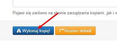 c. Pojawi się ekran tworzenia kopii, nic nie zmieniaj, nazwa kopii jest oznaczona aktualną datą, co będzie pomocne w przypadku konieczności odtworzenia kopii. Kliknij tylko "Wykonaj kopię".