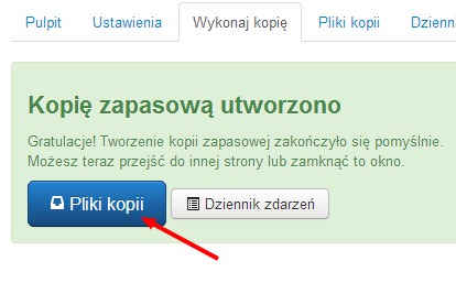e. Zobaczysz ekran, że wszystko przebiegło bez przeszkód. Kliknij "Pliki kopii"