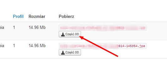 f. Pojawi się spis wszystkich wykonanych kopii, aby pobrać wykonaną kopię, kliknij w przycisk "część 00"